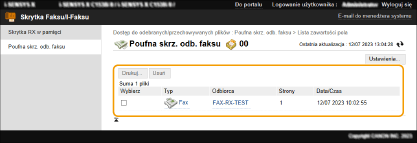 Możesz drukować lub usuwać faksy i I-faksy tymczasowo zapisane w Poufnej skrytce faksu.