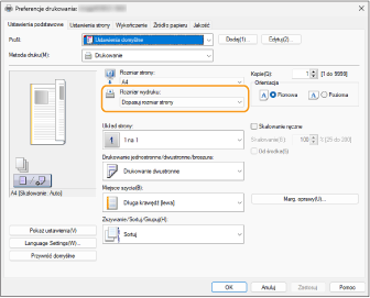Dopasować ustawienie [Rozmiar wyjściowy] w sterowniku drukarki do rozmiaru papieru przeznaczonego do druku.