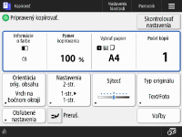Obrazovka základných funkcií kopírovania