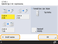 Stlačením tlačidla <OK> použijete nastavenia a stlačením tlačidla <Zrušiť nastav.> zahodíte zmeny a obnovíte predchádzajúce nastavenia.