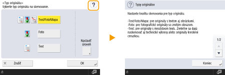 V závislosti od zobrazenej funkcie sa v pravom hornom rohu displeja môže zobrazovať . Stlačením tlačidla môžete skontrolovať popis funkcie alebo spôsob jej použitia.