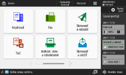 Stláčaním funkčných tlačidiel na obrazovke <Domov> zobrazíte obrazovku základných funkcií, ktorá umožňuje prístup k základným funkciám, ako sú kopírovanie, faxovanie a skenovanie. Položky zobrazenia a nastavenia na obrazovke základných funkcií sa síce líšia v závislosti od funkcií, no nastavenia môžete zmeniť podľa vašich potrieb. Prispôsobenie obrazovky základných funkcií