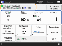 Ak je nastavený limit strán prostredníctvom správy ID oddelenia, zobrazuje sa zostávajúci počet strán. Informácie o nastaveniach správy ID oddelenia a limitov strán nájdete v časti Konfigurácia nastavení správy ID oddelenia.