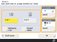 Stlačením tlačidla <Zmeniť> v časti <Veľ. originálu> môžete vybrať formát originálu a stlačením tlačidla <Zmeniť> v časti <Formát papiera> môžete vybrať formát papiera.
