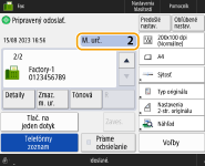 Kontrola celkového počtu špecifikovaných miest určeniaCelkový počet špecifikovaných miest určenia sa zobrazuje v pravej hornej časti obrazovky. Umožňuje overiť pred odoslaním, či je počet miest určenia správny.