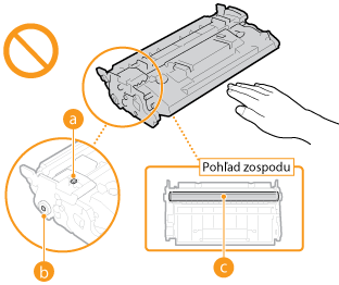Nedotýkajte sa pamäťového čipu kazety s tonerom (), ani elektrických kontaktov () alebo bubna ().