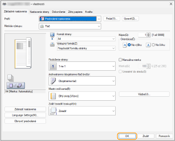 Podľa potreby špecifikujte nastavenia a kliknite na tlačidlo [OK].