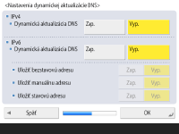 Ak chcete zapnúť automatické aktualizácie pomocou nastavení dynamickej aktualizácie DNS, pod položkou <Dynamická aktualizácia DNS> vyberte možnosť <Zap.> a stlačte <OK>.