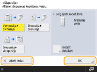 Nospiediet <OK>, lai piemērotu iestatījumus, un nospiediet <Atcelt iestat.>, lai dzēstu izmaiņas un atjaunotu iepriekšējos iestatījumus.
