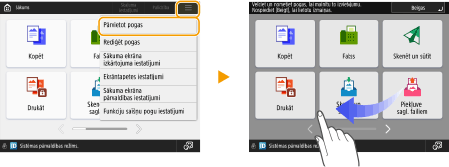 Dažos ekrānos lapu varat pārslēgt vai ritināt, pārvelkot pirkstu ekrānā uz augšu/uz leju vai pa kreisi/pa labi, līdzīgi kā izmantojot viedtālruni.