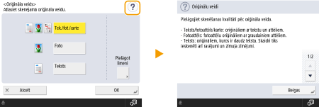 Turklāt tiek parādītas šādas pogas: <Atcelt>, kas ļauj atcelt iestatījumu un atkal atgriezties iepriekšējā ekrānā, <Tālāk>, kas ļauj iestatīšanā pāriet uz nākamo ekrānu, <Atpakaļ>, kas ļauj pāriet atpakaļ uz iepriekšējo ekrānu, un <Aizvērt>, kas ļauj aizvērt pašreiz atvērto ekrānu.
