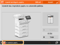 Varat mainīt ekrānu parādīšanas iestatījumus, piemēram, noteikt, kurš ekrāns tiek parādīts uzreiz pēc iekārtas ieslēgšanas, un vai tiek parādīts ziņojums par atlikušo papīra un tonera daudzumu. <Rādīt iestatījumus>