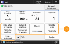Pamatfunkciju ekrānā novietoto iestatījumu vienumu skaits un parādāmā atrašanās vieta atšķiras atkarībā no funkcijām.