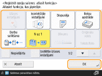 un pēc tam nospiežot <Mainīt noklusējuma iestatījumus>. Ja pirms šā iestatījuma veikšanas iekārtā piesakāties, izmantojot personu autentifikācijas pārvaldību (Pieteikšanās iekārtā), tas tiek reģistrēts kā jūsu personalizētais noklusējuma iestatījums (Personalizējamu vienumu saraksts). |