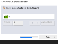 Ja izvēlaties <Iesl.> opcijai <Tastatūras autentifikācija>, nospiediet <Tālāk>.
