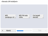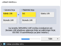 Ja izvēlējāties <Bezvadu LAN>, norādiet bezvadu LAN iestatījumus.