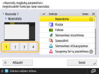 Pradiniuose parametruose <Garso parametrai> užregistruoti kaip 3 spartusis mygtukas, o <Pagalba> užregistruota kaip 4 spartusis mygtukas.