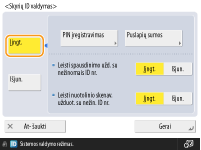 Įveskite ne daugiau kaip septynių skaitmenų PIN ir spustelėkite <Patvirtinti>. Patvirtinimui dar sykį įveskite PIN ir spustelėkite <Gerai>. Jei nenorite nustatyti PIN, šį elementą palikite tuščią.