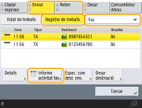 Podeu imprimir manualment un informe d'activitat de fax des de la llista de l'historial d'ús. Registre d'enviament/recepció de faxos