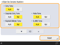 Her onay sesini/uyarı sesini ayarlayıp <Kapat> seçeneğine basın.