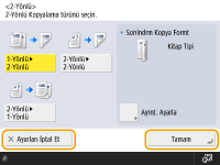Ayarları uygulamak için <Tamm> seçeneğine, değişiklikleri atıp önceki ayarları geri yüklemek için <Ayarları İptal Et> seçeneğine basın.
