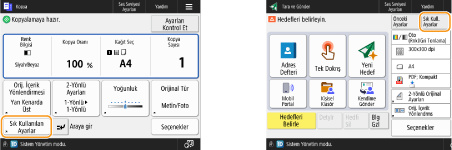 Kopyalama, faks ve tarama için genellikle aynı ayarlar birleşimini kullanıyorsanız bu ayarları <Sık Kull. Ayarlar> olarak ayarlamanız size kolaylık sağlayacaktır.