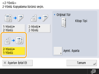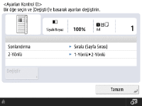 <Oto Sıralama> öğesi <Açık> olarak ayarlanırsa besleyiciye orijinallerinizi yerleştirdiğinizde Sıralama modu otomatik olarak ayarlanır. <Oto Sıralama>