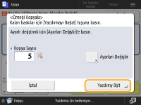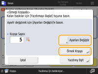 Ayarları değiştirmek için <Ayarları Değiştir> seçeneğine basın. Ayarlar değiştirildikten sonra <Örnek Kopya> öğesi görüntülenir. Tekrar bir örnek kopyalayın.