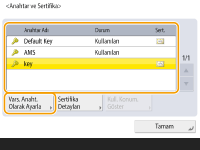 TLS şifreli iletişim için kullanılacak anahtar ve sertifikayı seçip <Vars. Anaht. Olarak Ayarla>  <Evet> seçeneğine basın.