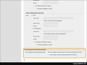 Hatalar için görüntülecek ekranı ayarlayın.