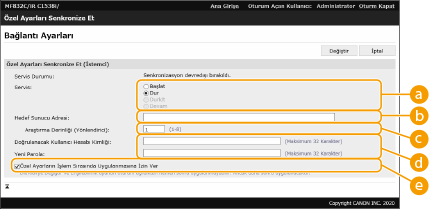 (Ayarlar/Kayıt)  <Yönetim Ayarları>  <Cihaz Yönetimi> seçeneğine basıp <Özel Ayarları Senkronize Et (İstemci)> seçeneğini <Etkinleştir> olarak ayarlayın.