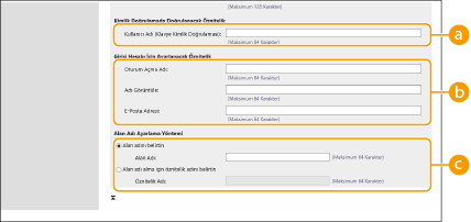 [Göz Atılacak Kullanıcı Özniteliği:] bölümünde belirtilen özniteliğe kayıtlı karakter dizesini girin. Kullanıcının ait olduğu gruba göre ayrıcalıkları ayarlamak için grup adını girin.