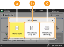 <1-Yönlü/2-Yönlü Tarama (Oto)>, yalnızca <OCR (Metin Aranabilir) Ayarları> içindeki <Akıllı Tarama> ayarı <Açık> olarak yapıldığında görüntülenir.