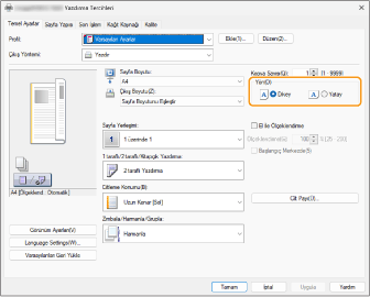 Uygulamanın yazdırma ayarları ekranında orijinalin yönünü seçin.