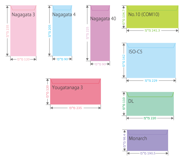 גדלי נייר הנתמכים על ידי מכשיר זה