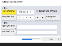 לחץ על <שרת DNS ראשי> ועל <שרת DNS משני>, הזן כתובת IPv4/IPv6 של שרת ה-DNS ולחץ על <הבא>.