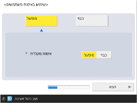 לחץ על <מופעל> עבור <שימוש באימות משתמשים>, לחץ על <מופעל> עבור שיטת השימוש לצורך התחברות, ולחץ על <הבא>.