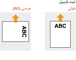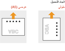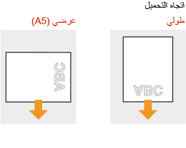 يتم ضبط الطريقة المناسبة لتحميل الورق المطبوع مسبقًا عند ضبط "الورق المطبوع مسبقًا" <تشغيل> في <إعدادات إدارة نوع الورق> أو عند ضبط <تبديل طريقة تغذية الورق> على <أولوية وجه الطباعة>