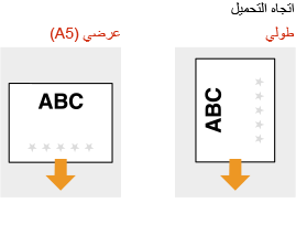 يصف هذا القسم كيفية تحميل الورق المطبوع مسبقًا مع توضيح التوجيه الصحيح. للحصول على وصف للإجراء العام لتحميل الورق في درج الورق أو الدرج متعدد الأغراض، راجع أسلوب تحميل الورق الأساسي.
