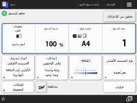 المعروضة على الشاشة <الرئيسية> وشاشة الميزات الأساسية لتخصيص الشاشة مثل إعادة ترتيب الأزرار أو إنشاء مفتاح مختصر. تخصيص شاشة لوحة اللمس