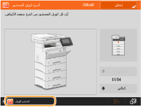 (شاشة الحالة)، يتم عرض <شاشة الحالة>. في هذه الشاشة، يُمكنك التحقق من حالة الطباعة وحالة الإرسال، بالإضافة إلى كمية الحبر المتبقي ومستوى الذاكرة.