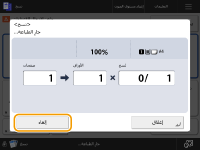 (إيقاف) في لوحة التحكم أثناء عرض شاشة ميزات النسخ الأساسية، يتم إيقاف مهمة النسخ مؤقتًا، ويتم عرض رسالة <إيقافحدد مهمة النسخ التي ترغب في إلغائها.> وقائمة مهام النسخ. يمكنك تحديد مهمة التصوير من القائمة وإلغاء مهمة التصوير بالضغط على <إلغاء>.إذا سجلت الدخول بإدارة المصادقة الشخصية وسجلت الخروج بعد الضغط على