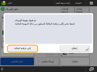 عند ضبط <عرض إخطار عند قبول المهمة> على <تشغيل>، يمكن عرض شاشة <شاشة الحالة> من الشاشة التالية التي تظهر بعد تلقي مهمة إرسال. <عرض إخطار عند قبول المهمة>