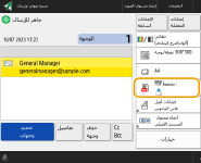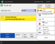 للتحقق من إجمالي عدد الوجهات المحددةيتم عرض إجمالي عدد الوجهات المحددة أعلى يمين الشاشة. يمكّنك هذا من التأكد من صحة عدد الوجهات قبل الإرسال.