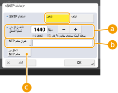 اضغط على <تشغيل> في <استخدام SNTP> ونفِّذ الإعدادات اللازمة.