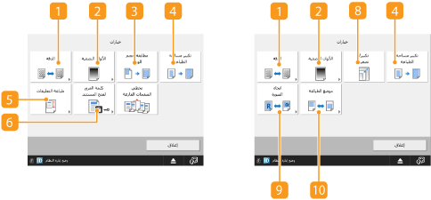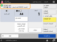 يتم عرض حالة الإعداد مثل حجم الورق المستخدم للطباعة عليه وعدد مرات الطباعة. احرص على تأكيد الإعدادات للطباعة بصورة صحيحة. لتغيير الإعدادات، اضغط على الزر الموجود أسفل قسم العرض. لتغيير عدد مرات الطباعة، أدخل الرقم باستخدام المفاتيح الرقمية.