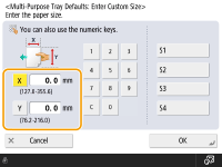 اگر اندازه کاغذی را که اغلب استفاده میکنید روی دکمههای <S1> تا <S4> ثبت کنید، میتوانید با یک لمس آنها را فراخوانی کنید. ثبت کاغذ با اندازه دلخواه (کاغذ با اندازه سفارشی)
