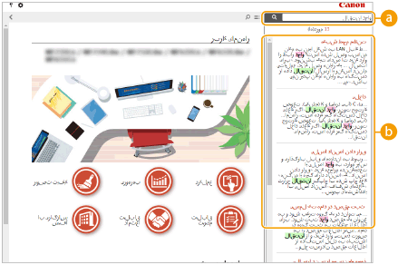 با کلیک کردن میتوانید میان فهرست مطالب و صفحه جستجو جابجا شوید. زمانی که فهرست مطالب نشان داده شود، هر کلیکی روی