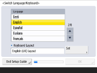 برای تغییر طرح صفحه کلید، <Set> را فشار دهید، طرح صفحه کلید را انتخاب کنید و <OK> را فشار دهید.