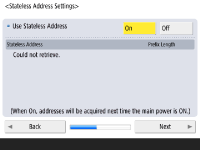 <On> را برای استفاده از DHCPv6، یا <Off> را برای عدم استفاده از DHCPv6 فشار دهید و <OK> را فشار دهید.